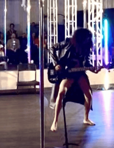 Liz brings a radically original approach to pole dancing—fusing the strength and grace of pole acrobatics with the expressive freedom of dance and the soul-shaking power of live bass. Her movement style is both athletic and artistic, treating the pole not just as a tool, but as an instrument of storytelling. Blending rhythm, sensuality, and sound, Liz transforms each performance into a visceral, visual concert—where the body becomes the music, the pole the stage, and the bass becomes the pulse.